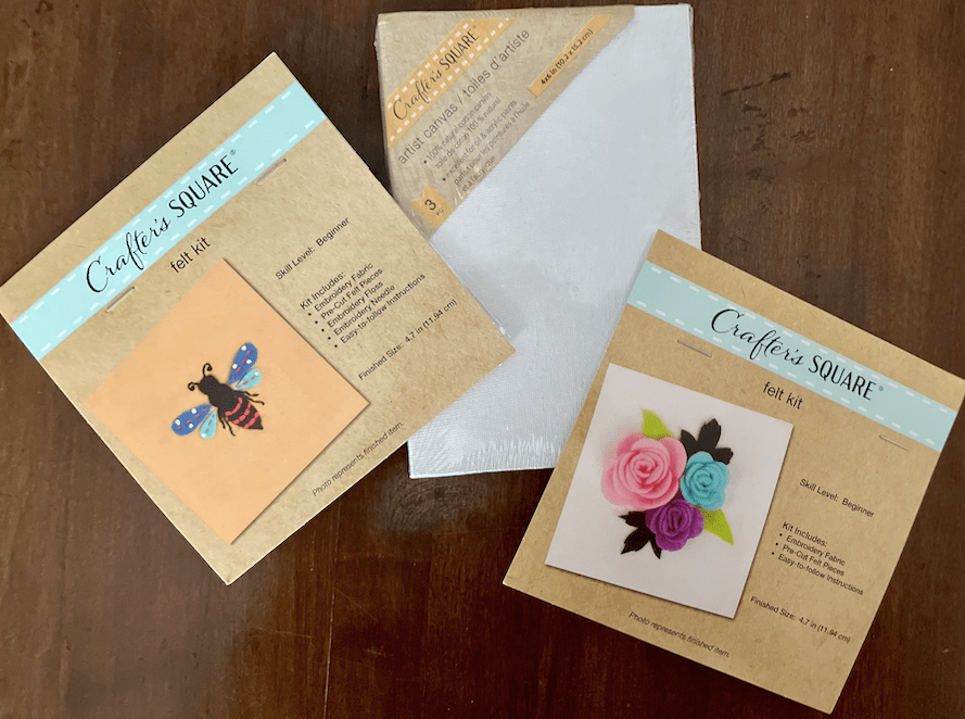 They have a ton of stuff! My kids love to paint, so I was super excited when I saw the Crayola brand in the craft isle. I was even more excited when I found canvases of multiple sizes-and, yes, still only costing me $1.25. Aside from typical craft supplies, they have these adorable little felt kits, which are good for older kids and adults. I love crafting, so I could go on forever telling you all I have discovered, but I’ll leave you with just one more item I was surprised to find at the dollar store: vinyl! Yes, like for a Cricut (but obviously not brand name)! They have the normal, larger size vinyl rolls, as well as smaller ones that I’m hoping to try out on my Cricut Joy in the near future.