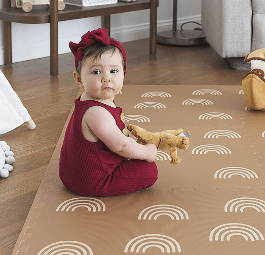 This. Mat. Rocks! This mat comes in a variety of stylist patterns and colors, which makes it easy when making selections for various rooms. This mat is water-resistant and easy to clean (we used cleaning wipes on ours and they held up just fine). It’s soft enough for littles to play on, and cushiony enough for mom to join them without getting sore. We had this mat in the first pattern shown, and it looked fantastic in our rustic living room. We got tons of compliments from guests, and everyone was surprised it was a foam mat. See more patterns and colors here: https://a.co/d/8G3HdCC
