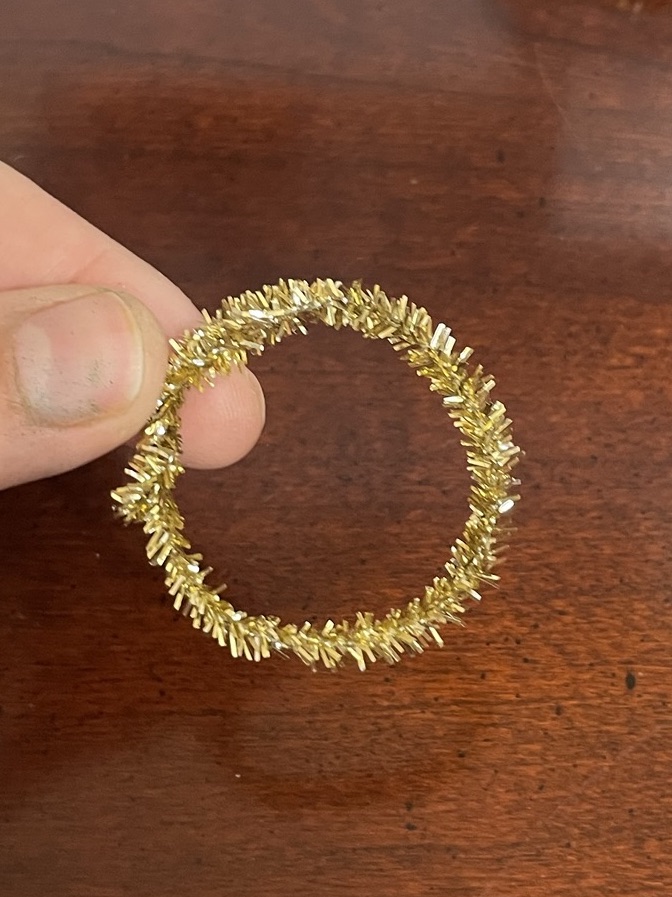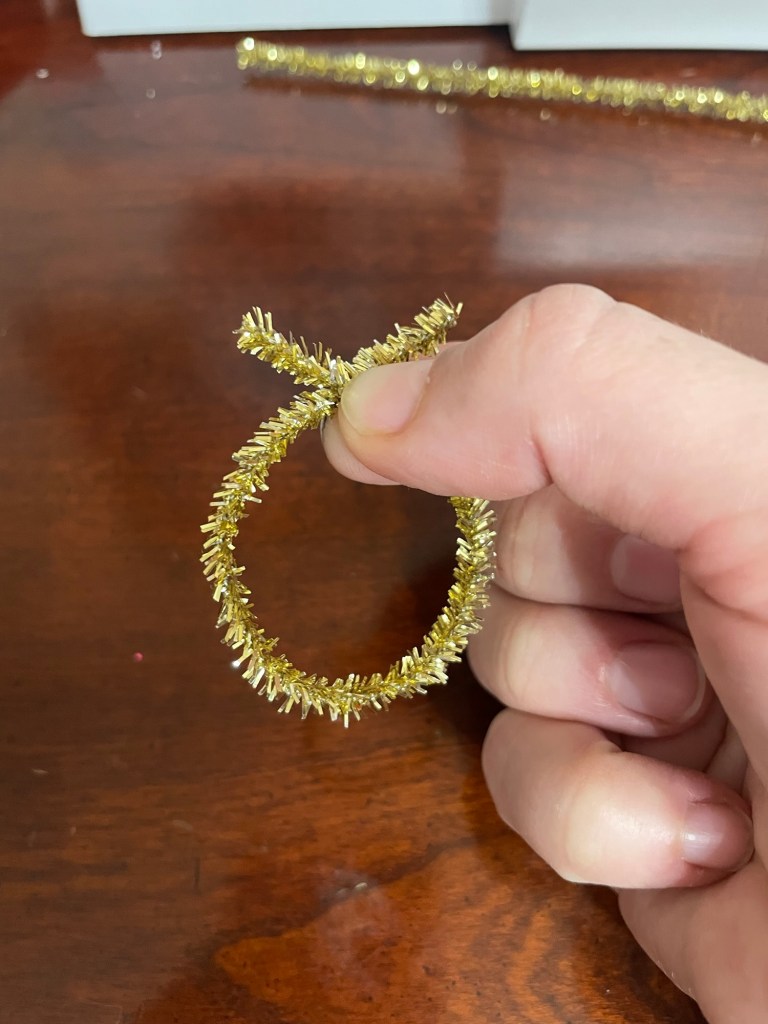 I cut my pipe cleaners in half, but you can cut them (or not) to whatever size you want. Bend the pipe cleaner into a circle. Wrap the ends around the circle you made to secure it.