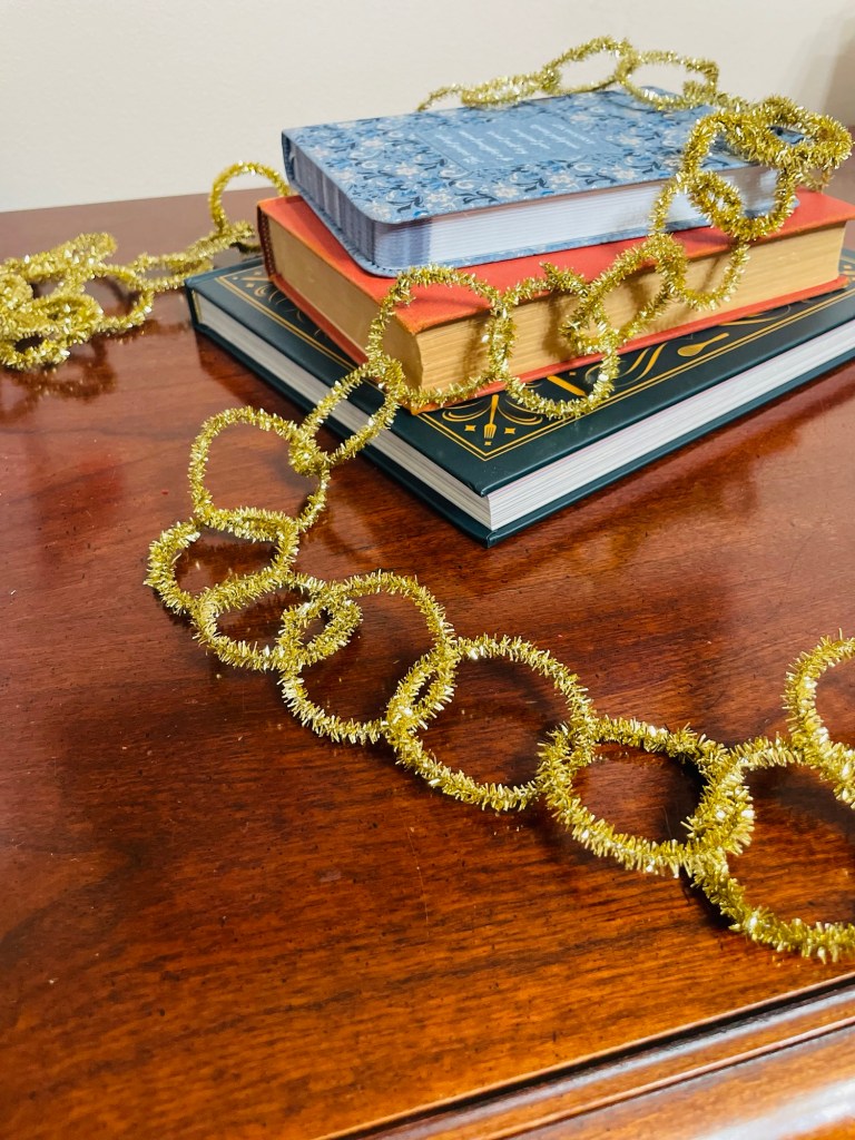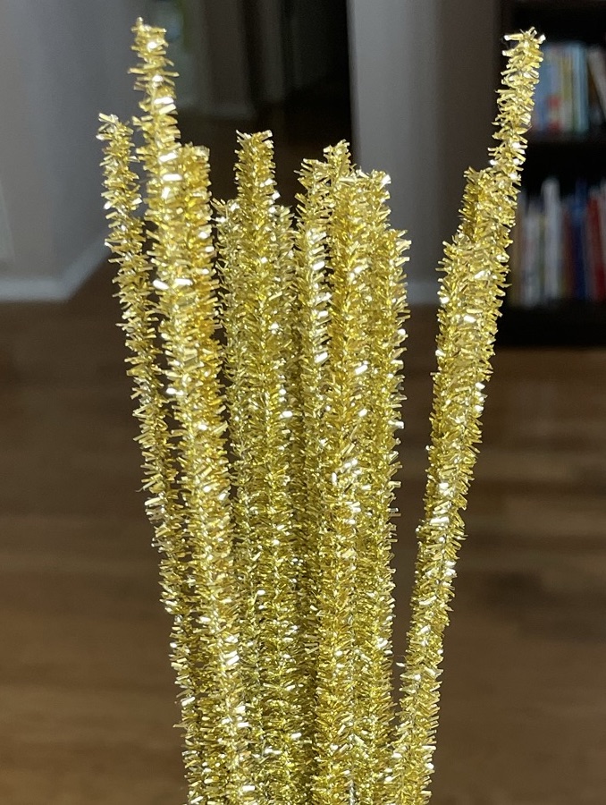 Grab some pipe cleaners and you’re all set for this easy sparkly Christmas garland! You can use whatever colors you like. I chose sparkly gold to add a little pizazz. This is also a kid-friendly project, so grab the kids and have some family fun!